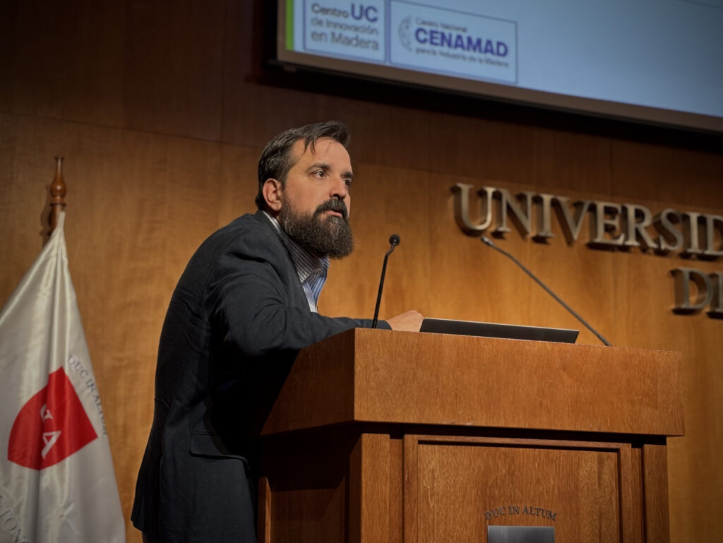 La jornada contó además con la participación de nuestro investigador asociado a CENAMAD, Felipe Victorero, quien presentó el trabajo desarrollado por el Centro en torno al diseño de envolventes y fachadas de madera con baja huella de carbono, en el marco del Consorcio Tecnológico Ciudad Madera.
